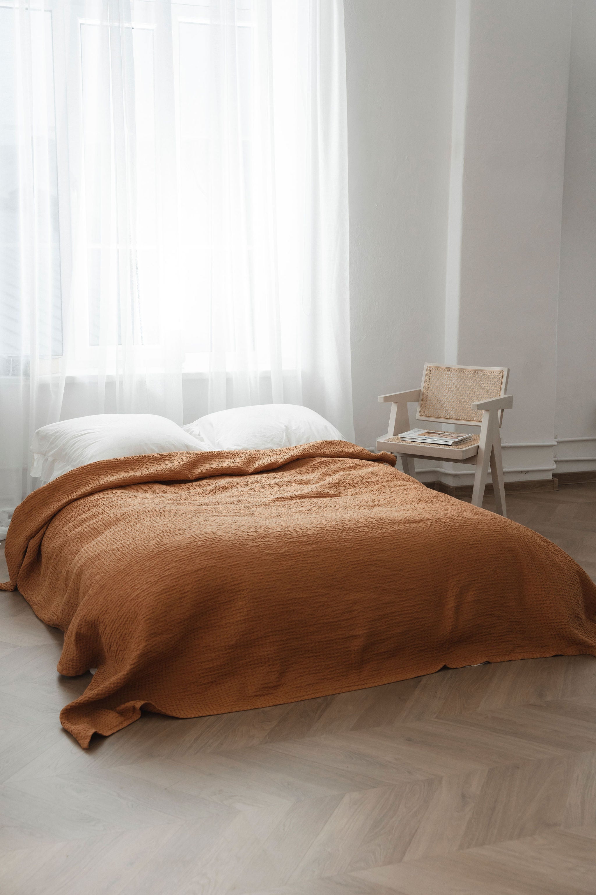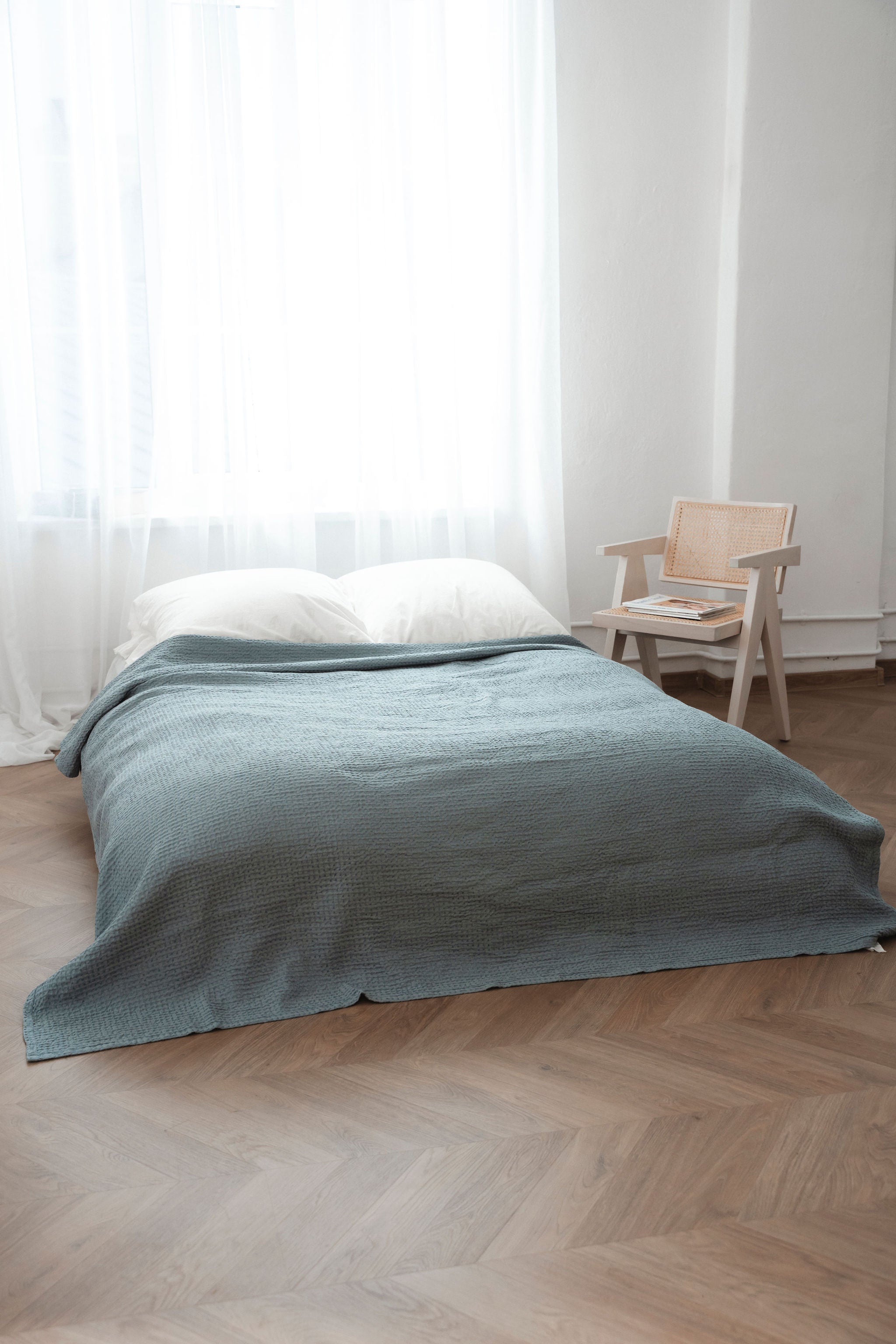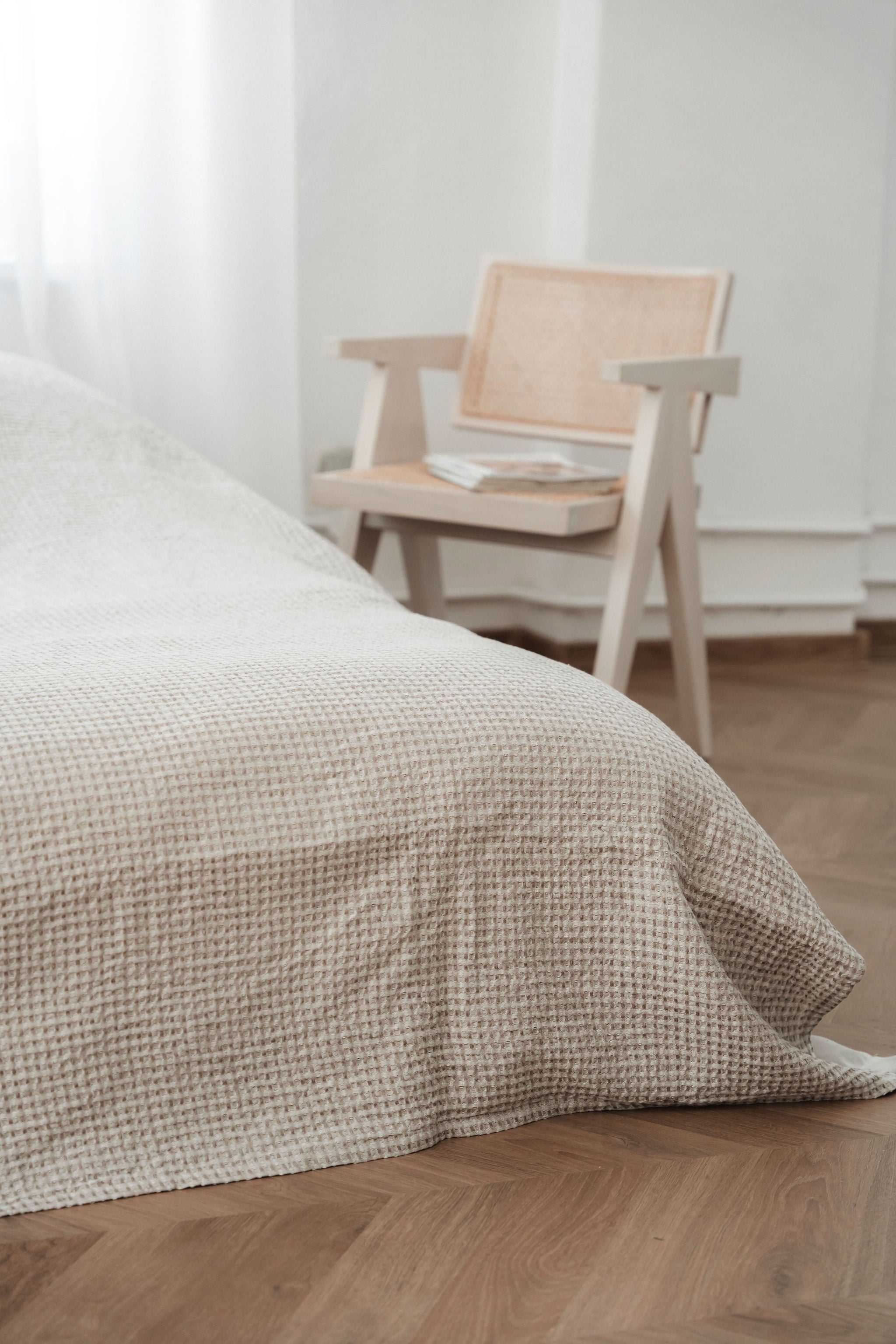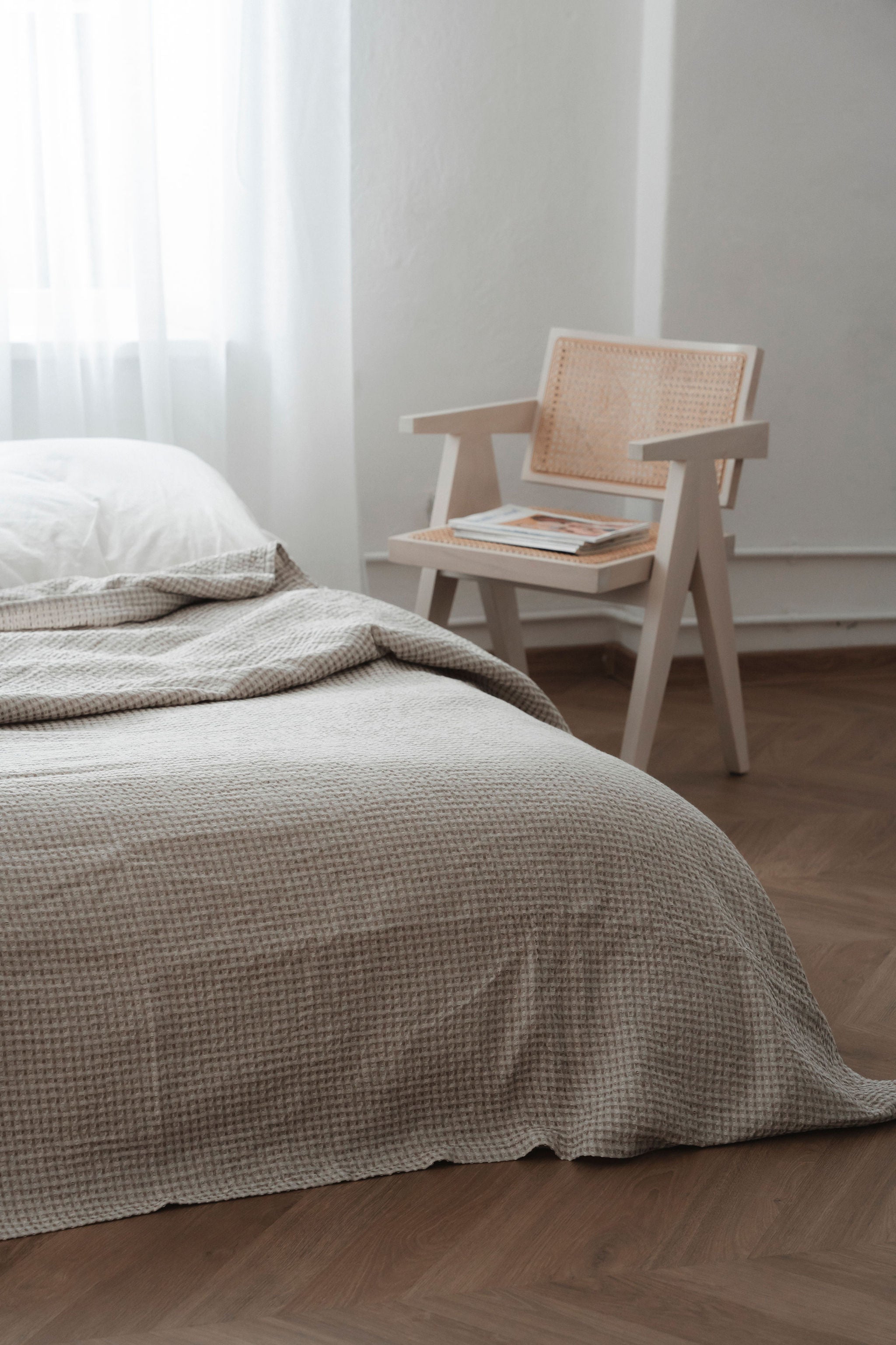 Lina–kokvilnas vafeļauduma gultas pārklājs