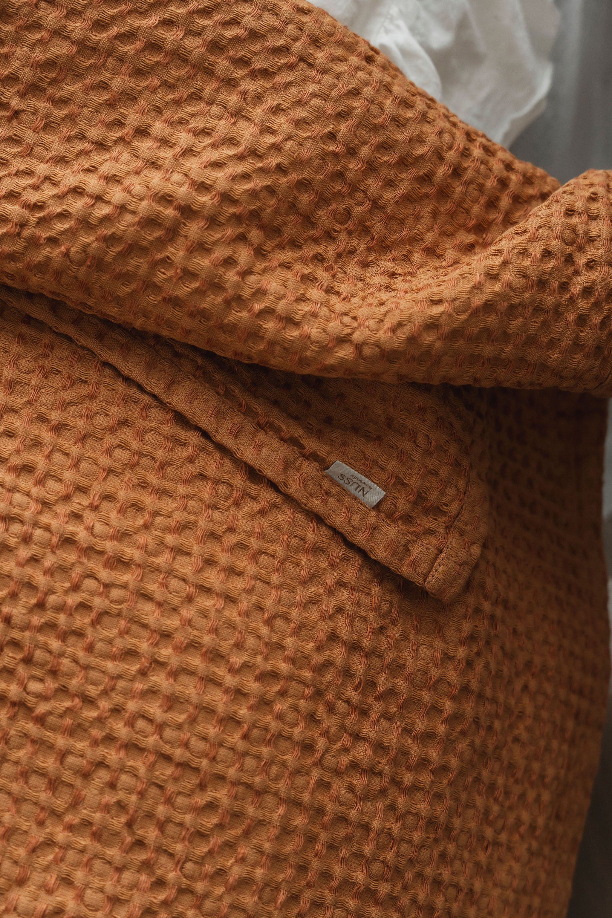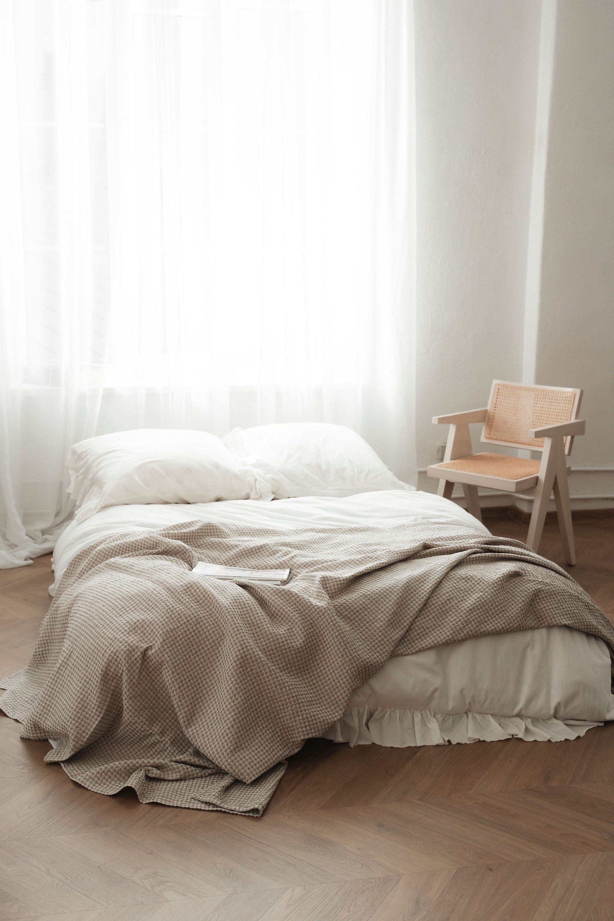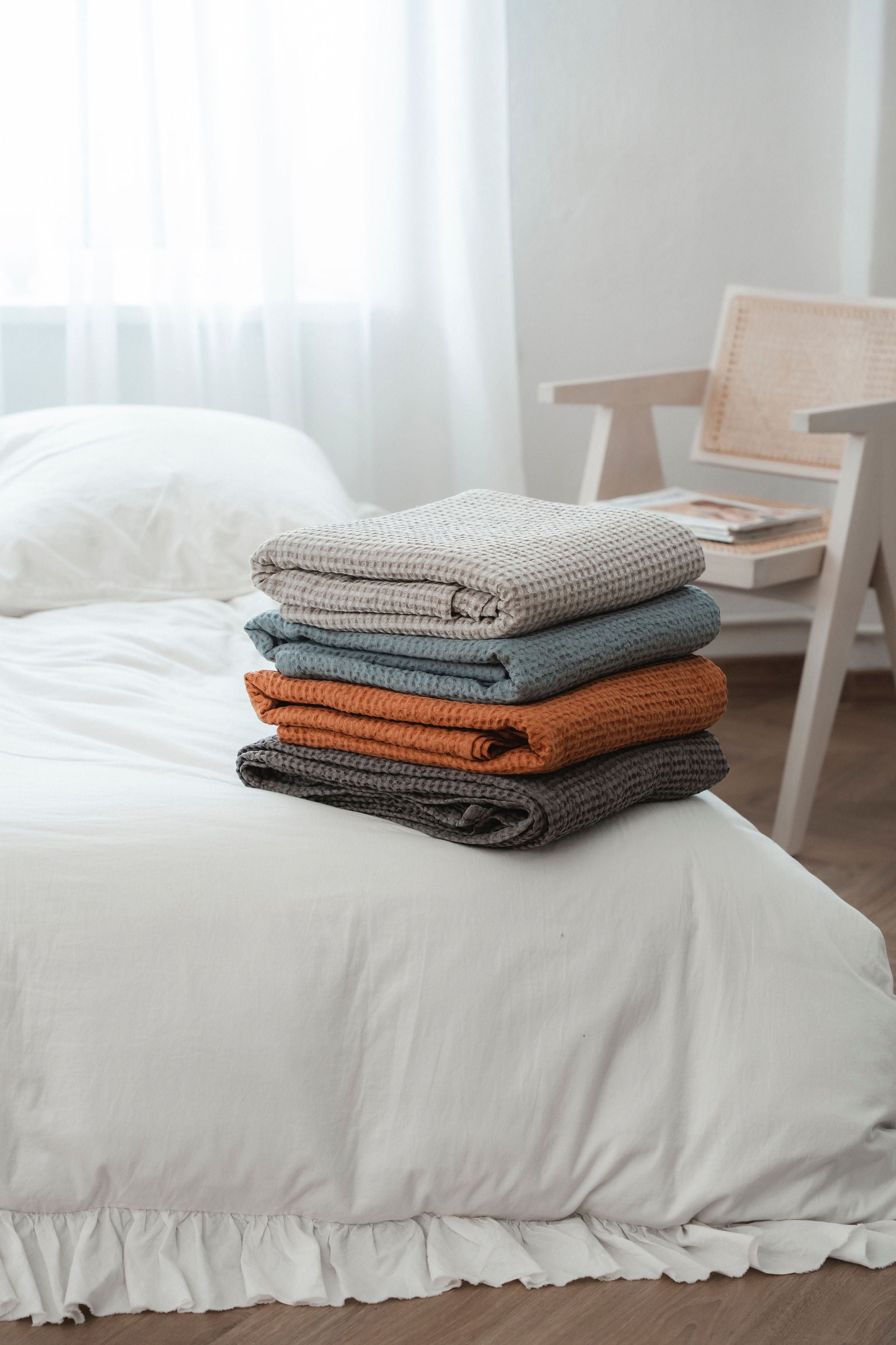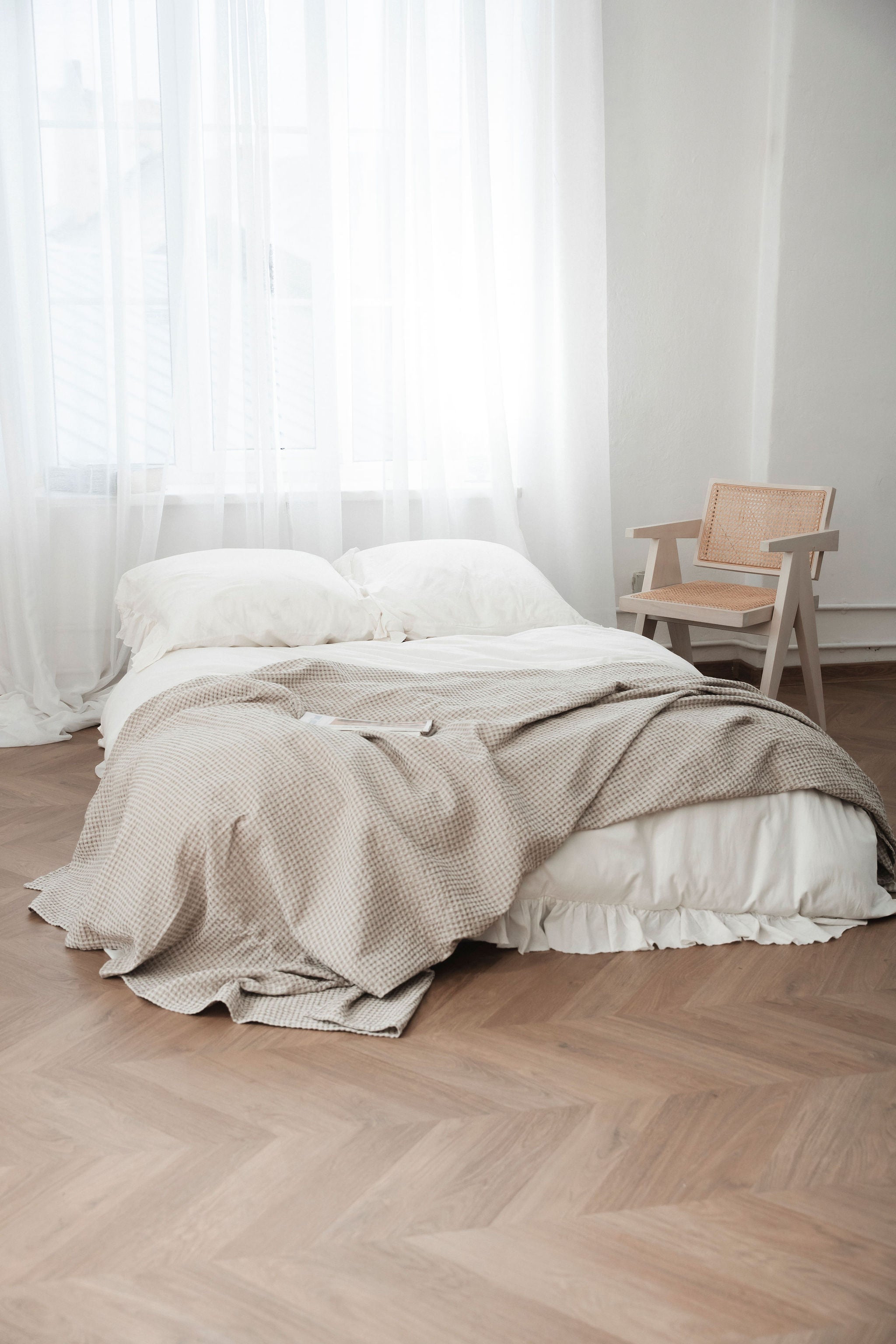 Lina–kokvilnas vafeļauduma gultas pārklājs