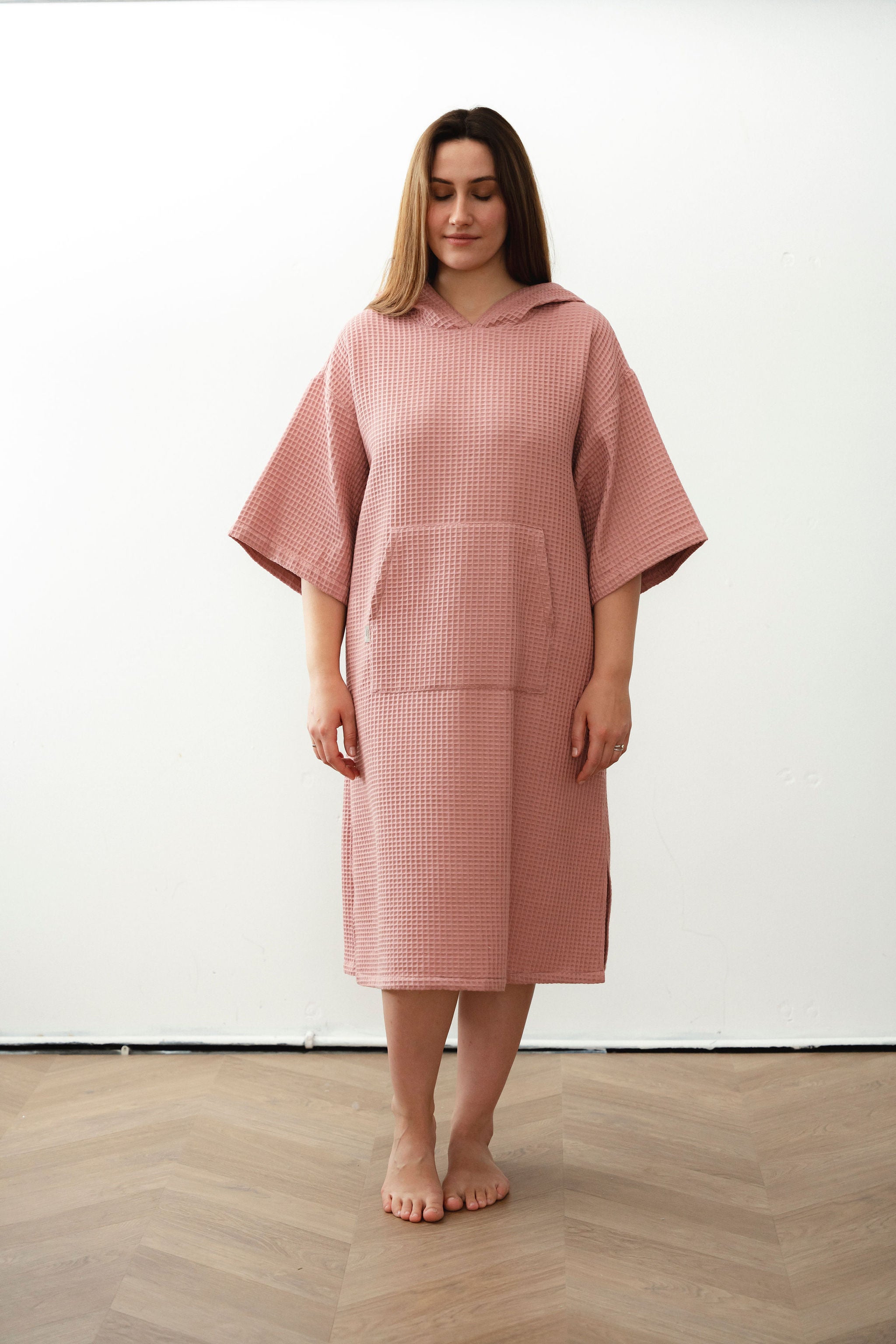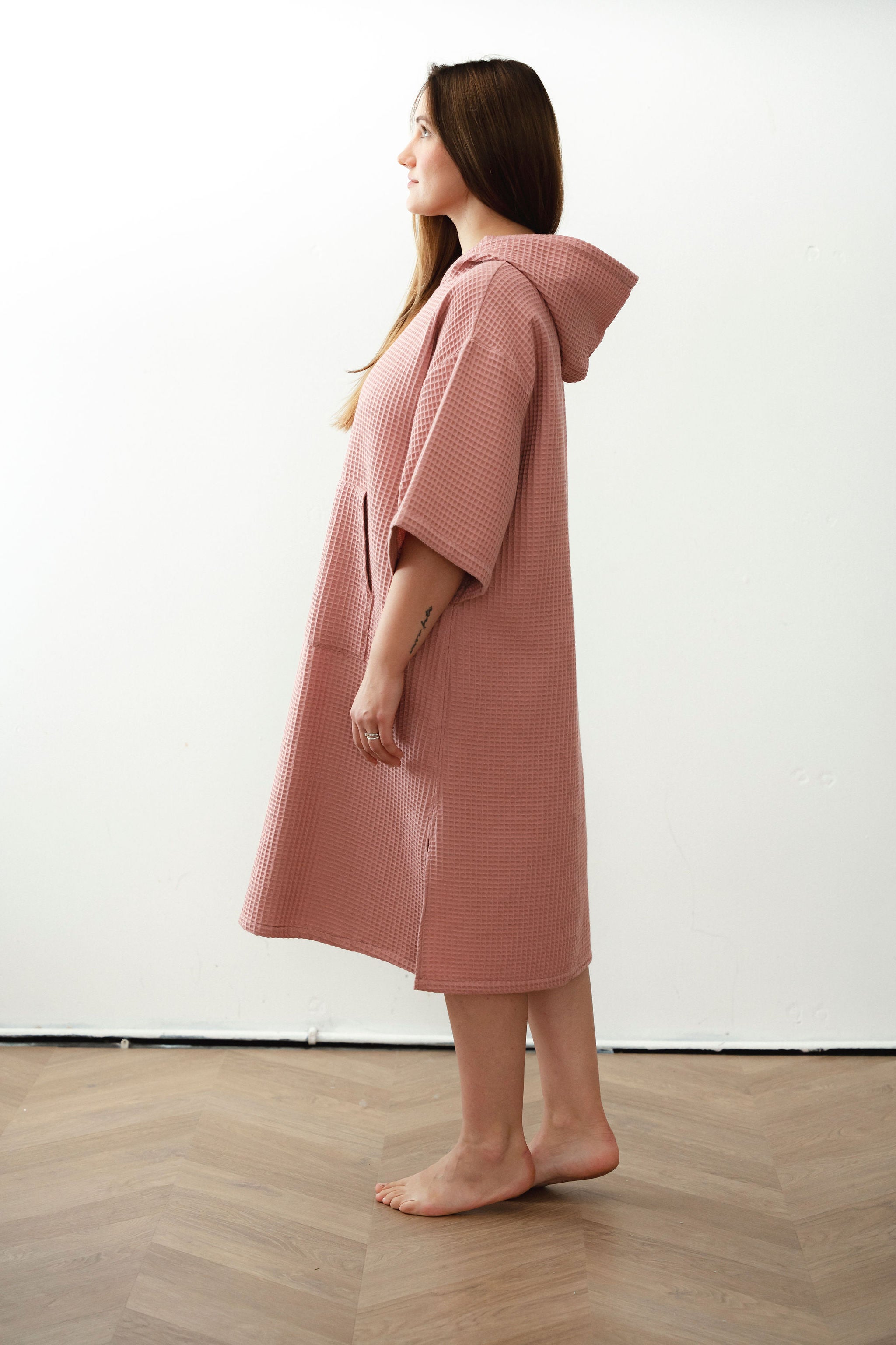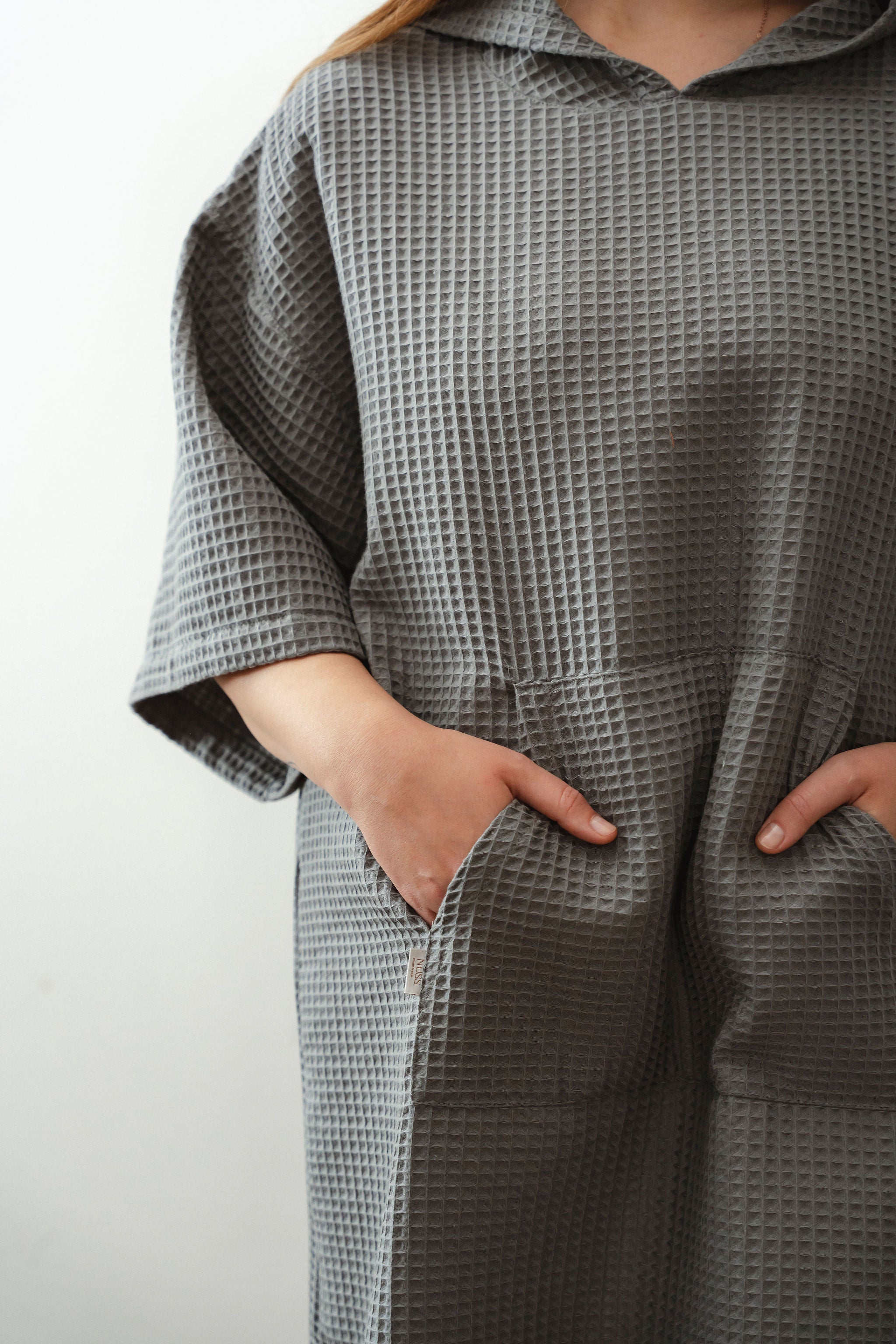 Kokvilnas vafeļauduma pončo halāts ar kapuci - "unisex" | Roku darbs Latvijā
