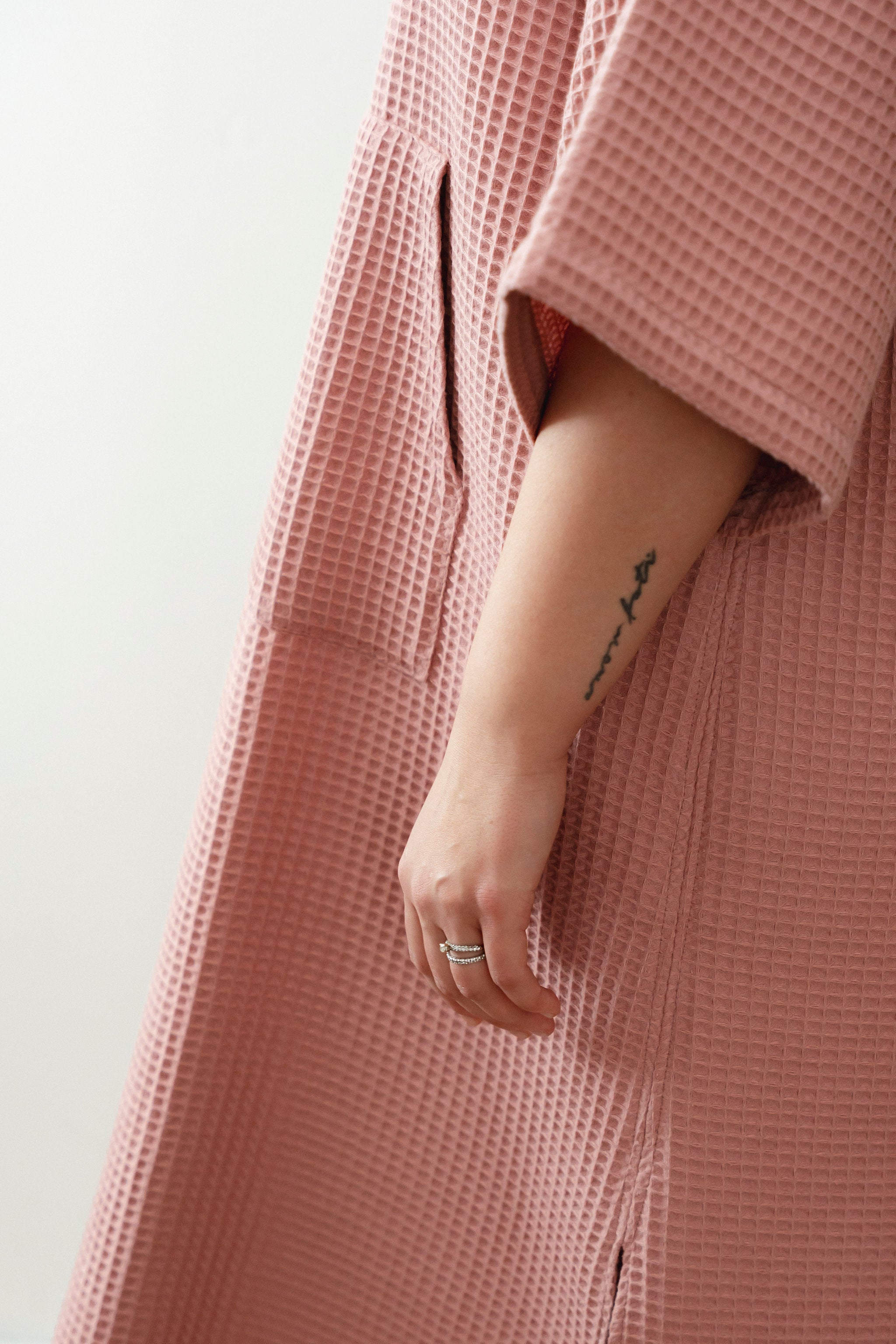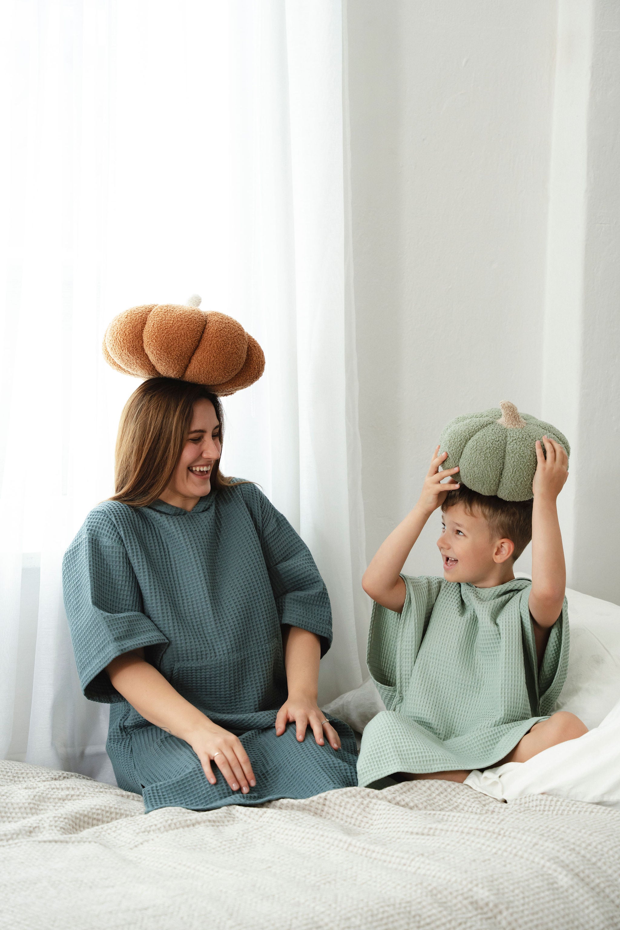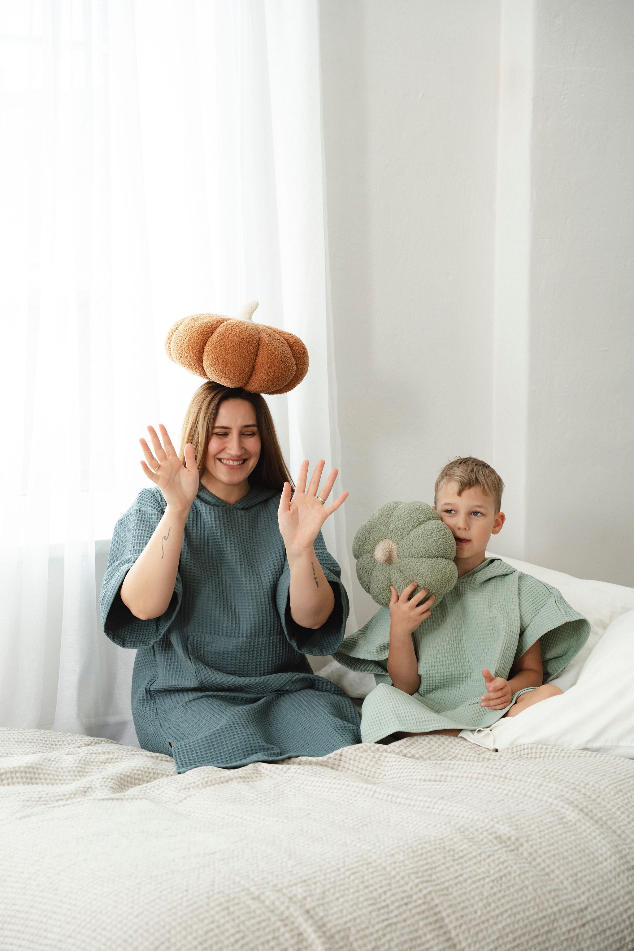 Kokvilnas vafeļauduma pončo halāts ar kapuci - "unisex" | Roku darbs Latvijā