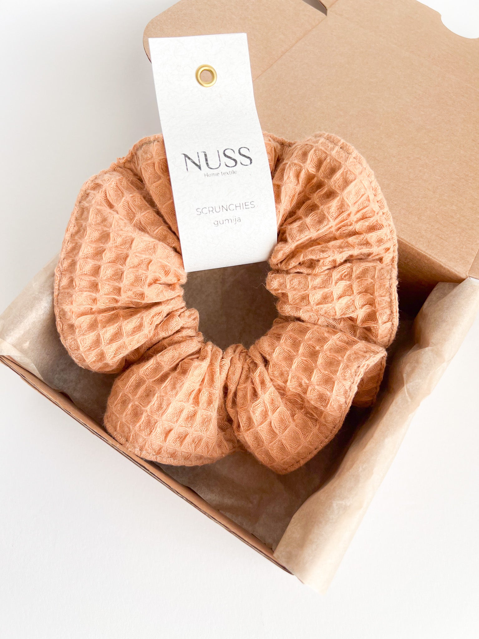 Karameļu krāsas matu gumija - ''scrunchie''