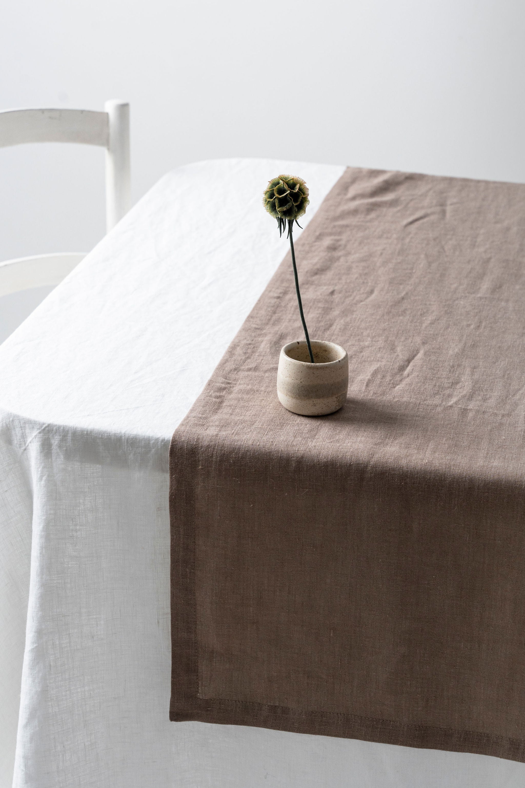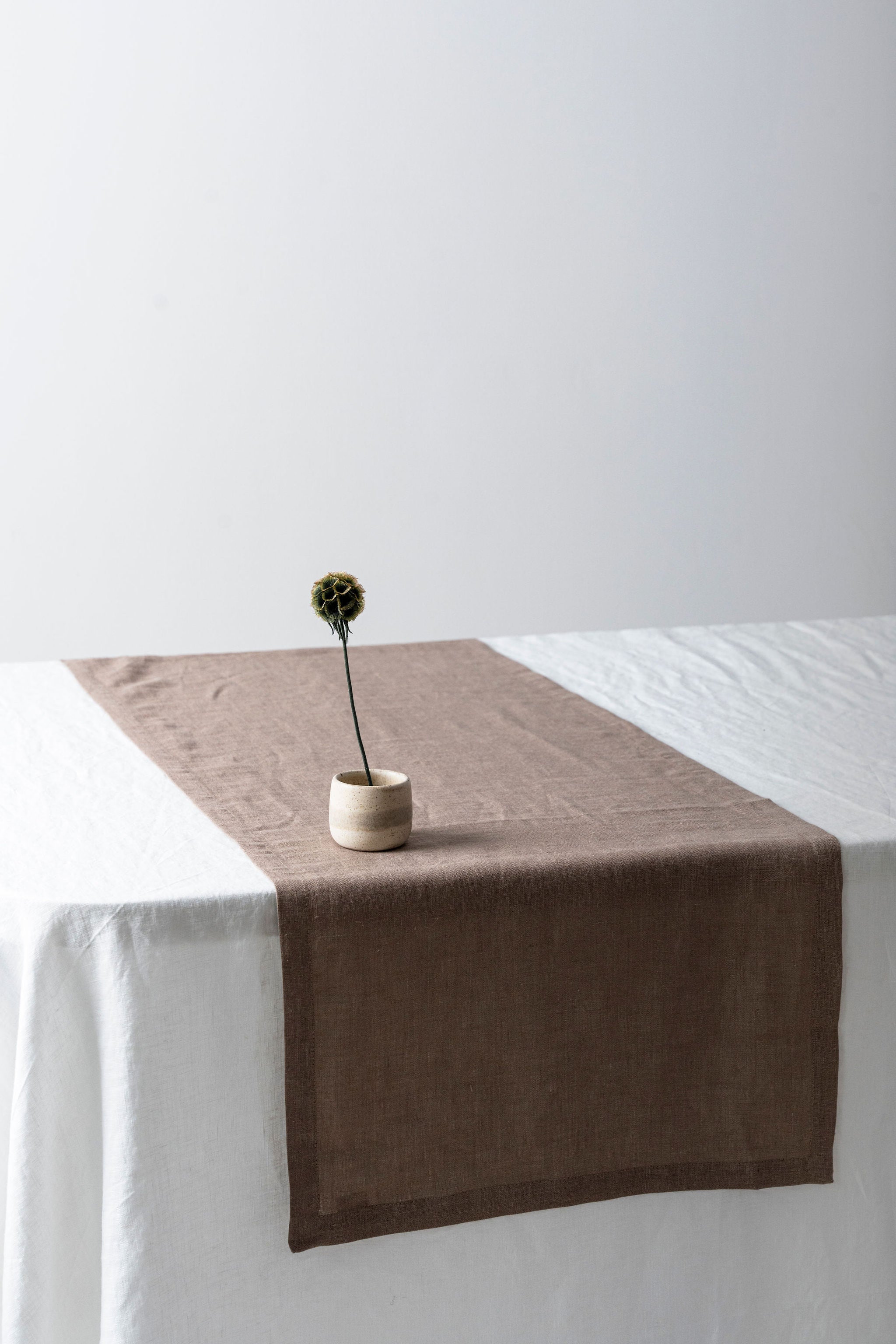 Brūns lina galda celiņš ar volāniem