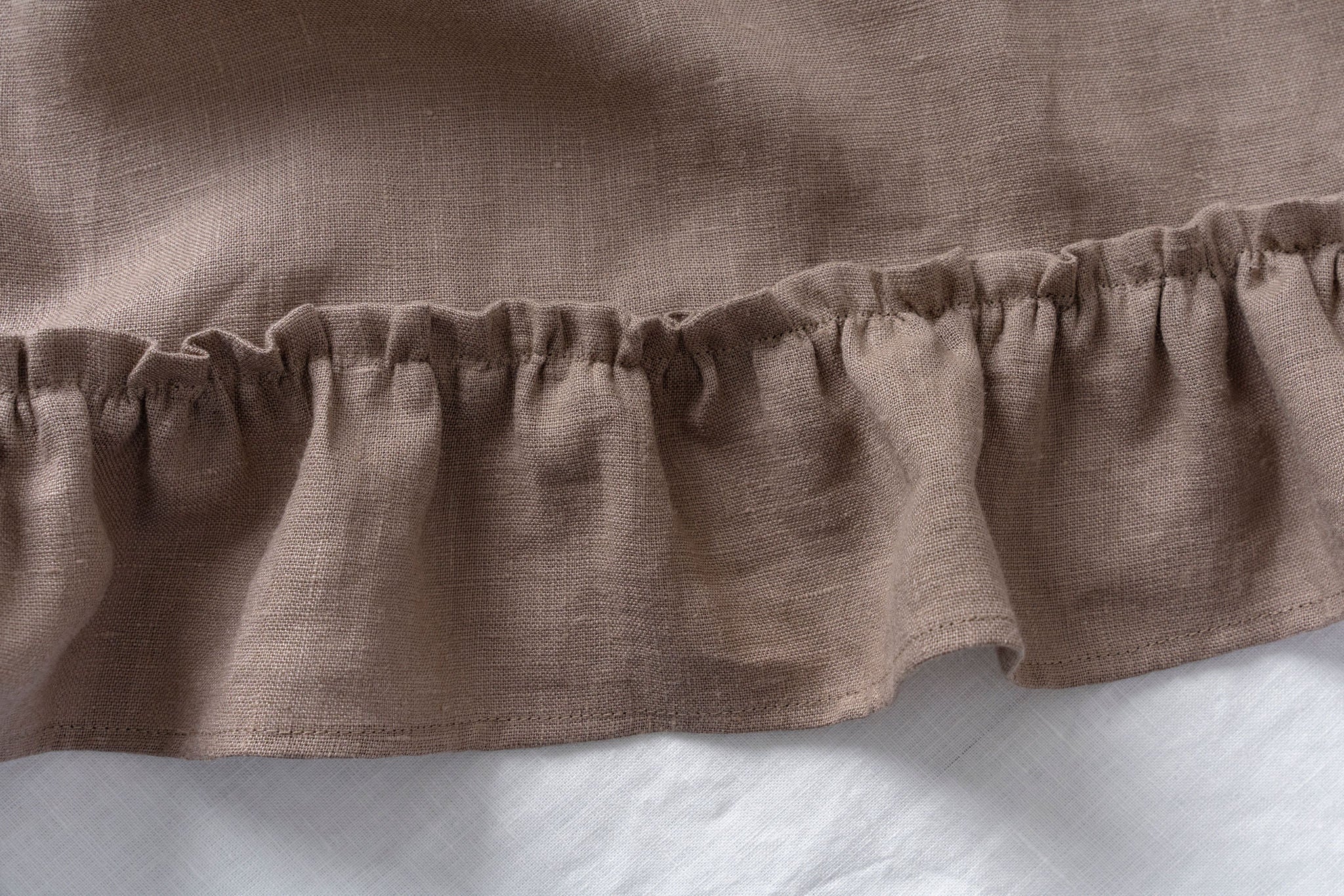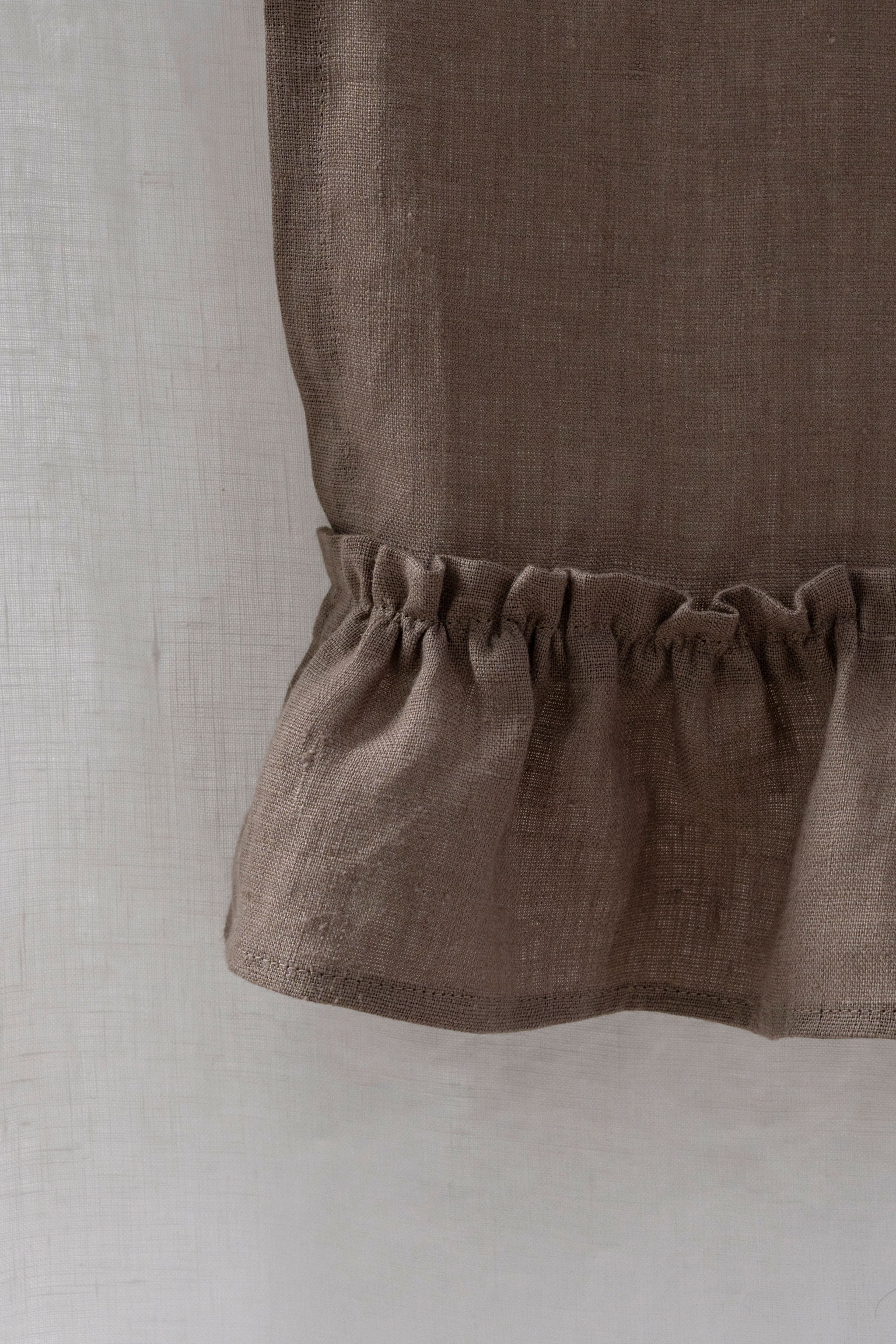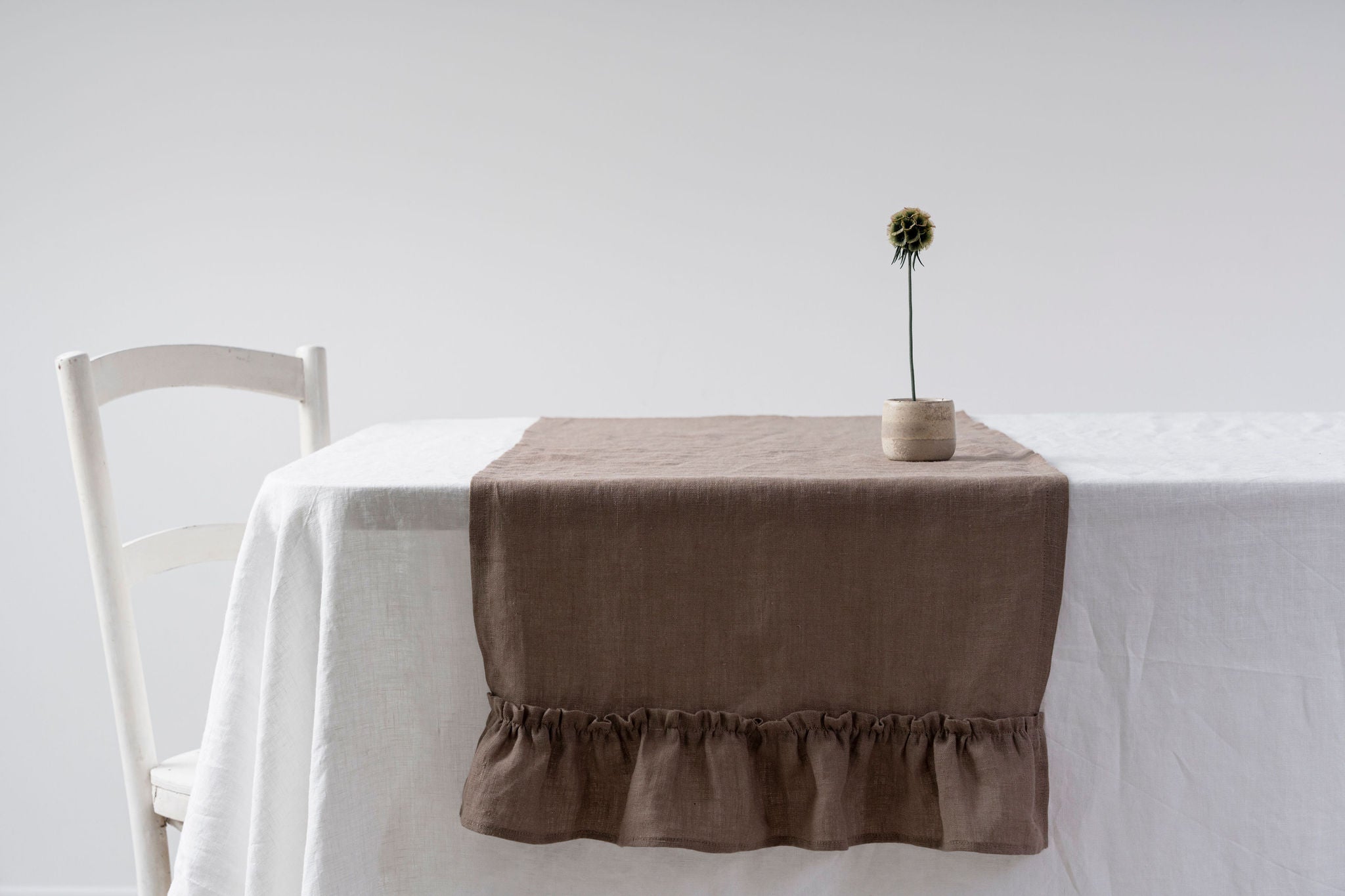 Cappuccino - linen table runner with ruffles